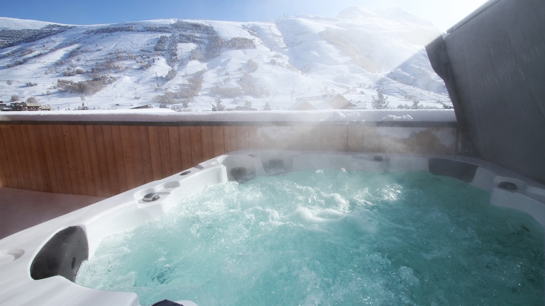 The best views are reserved for the outdoor hot tub on the large balcony. Kick back after a day on the mountain with friends or family and decide where to explore the following day. As well as the hot tub, there's also a sauna and a video room too, so relaxing will be pretty easy here.